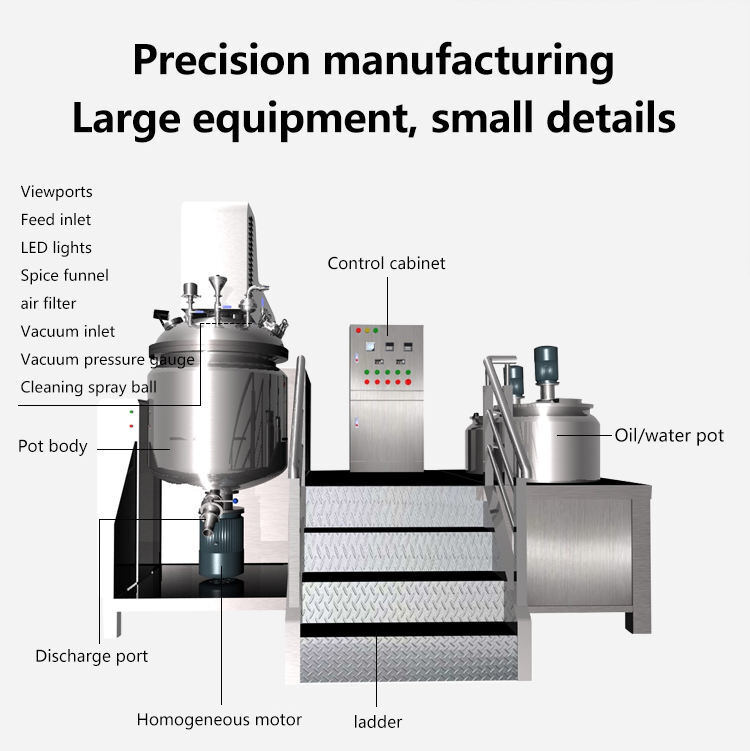 Whether you are engaged in cosmetics, daily chemicals, pharmaceutical, or other related industries, the Vacuum Mixer Emulsifying Homogenizer can meet your production needs for ointments, toothpaste, creams, lotions, and other products. It is your reliable partner for improving production efficiency, ensuring product quality, and realizing industrial upgrading.
